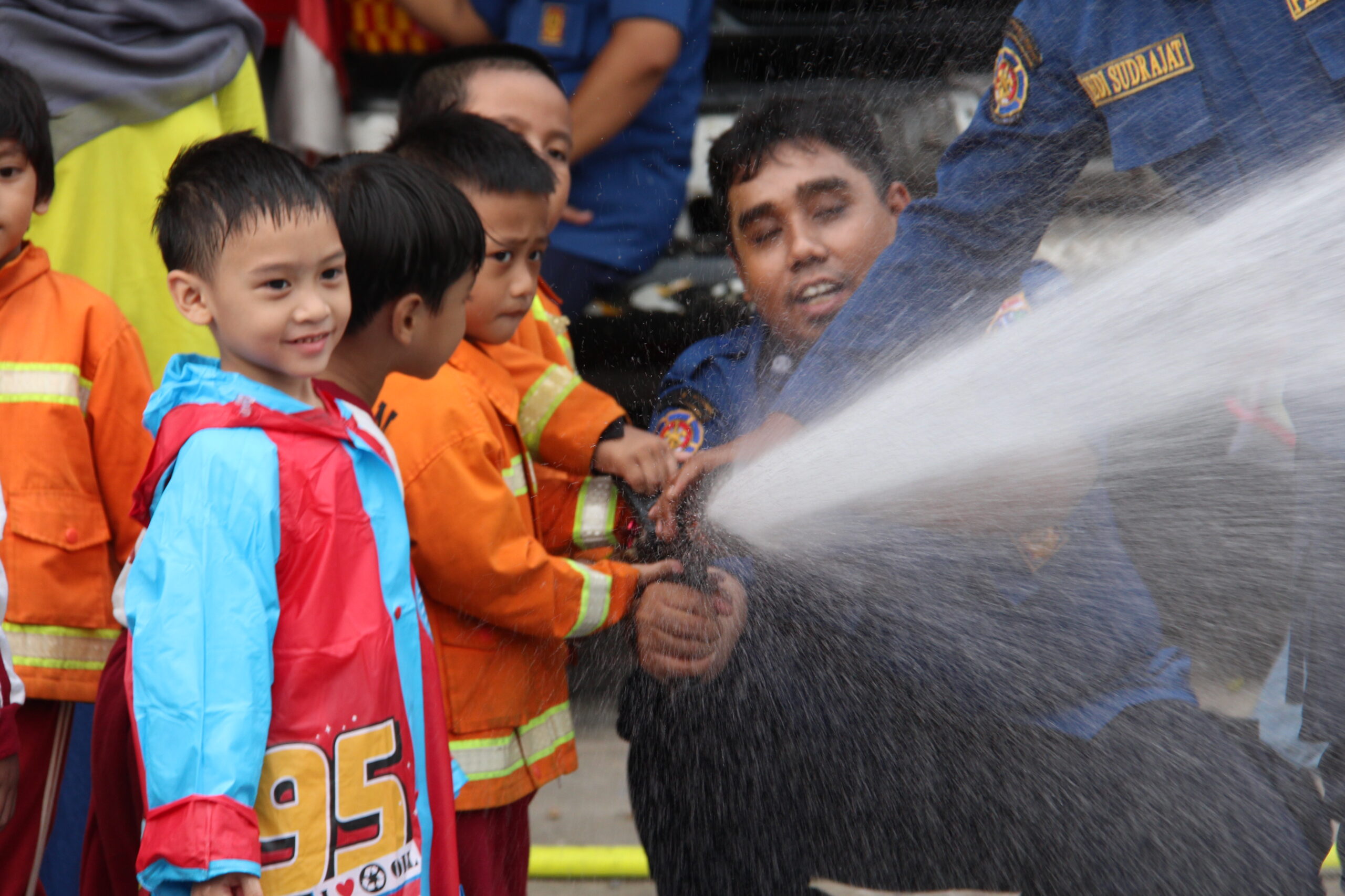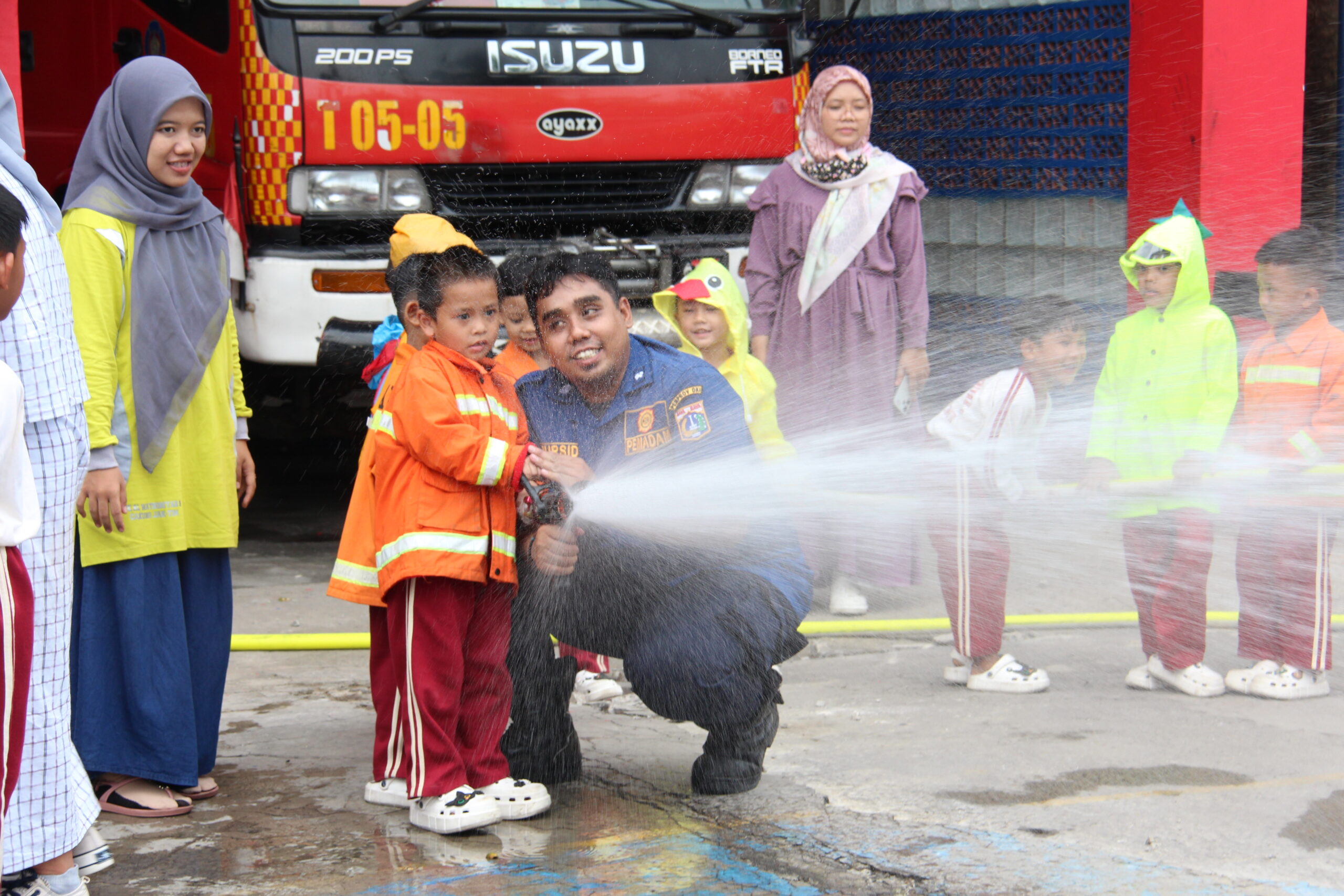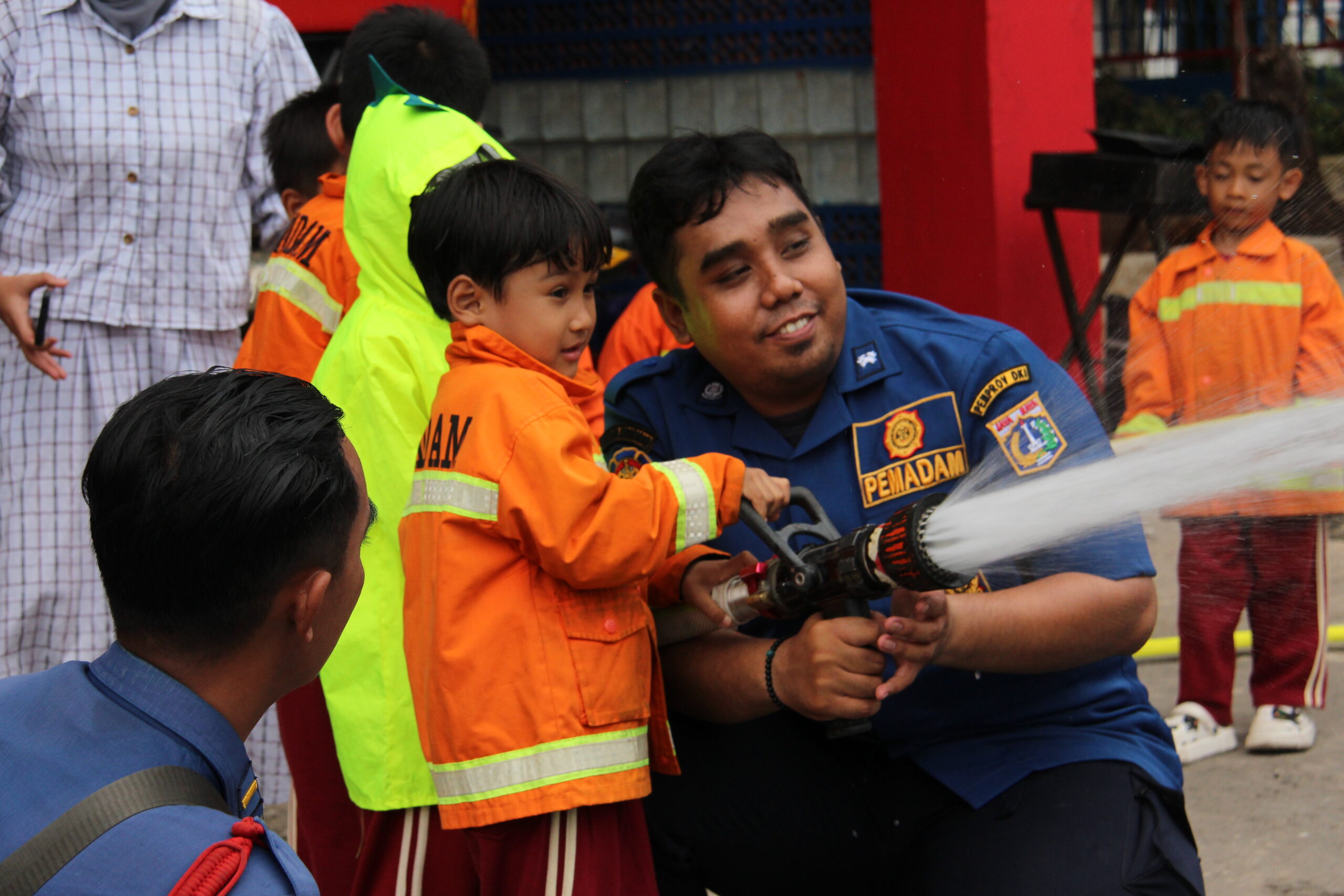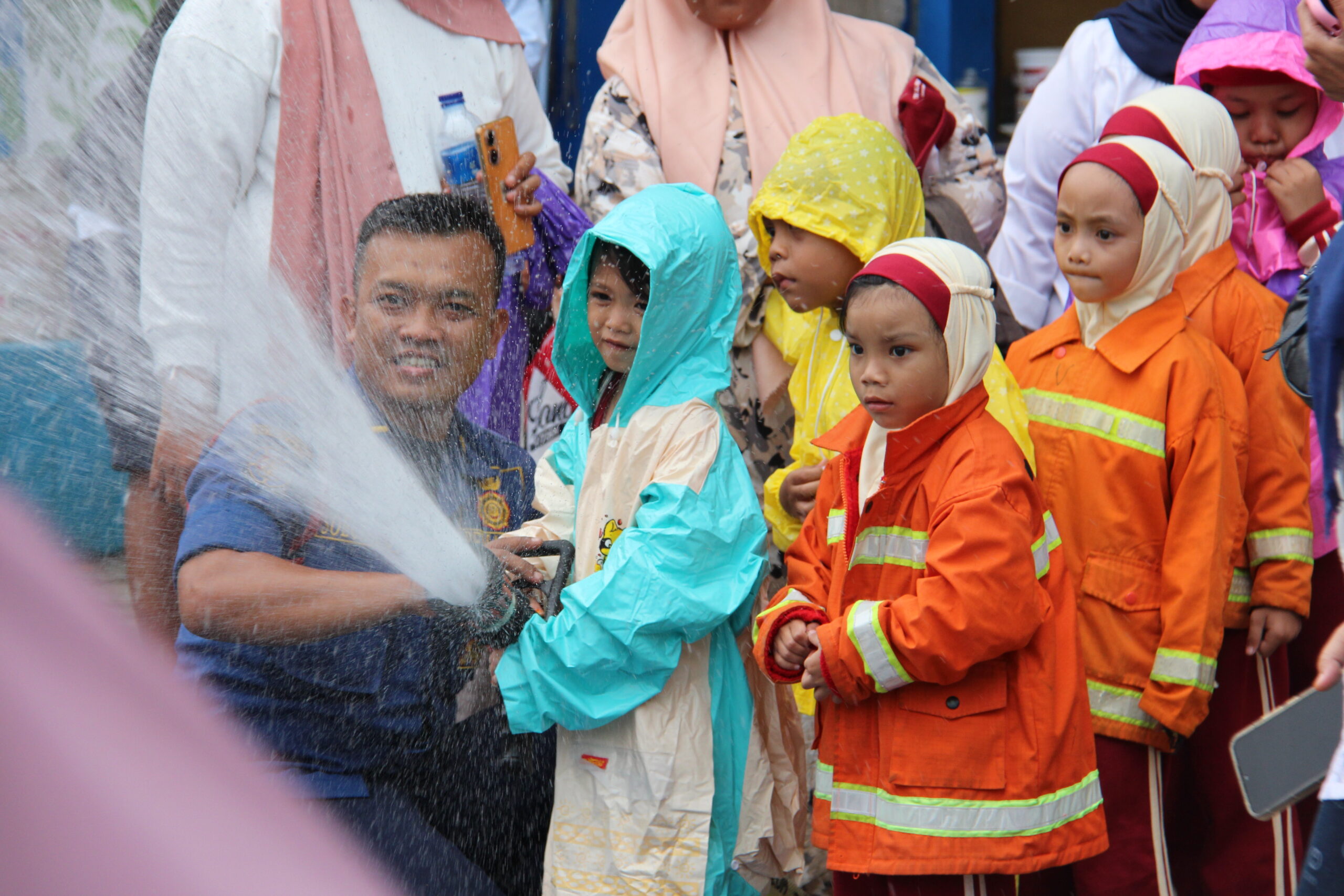 Momennya tiba ketika anak-anak diperkenankan untuk merasakan bagaimana cara memadamkan api secara aman. Dalam suasana simulasi yang terkontrol, mereka diajak untuk menggunakan selang air kecil dan menyemprotkan air ke “api”. Dalam kegembiraan, mereka belajar bahwa keselamatan adalah hal yang utama dan diperlukan kehati-hatian dalam situasi darurat.