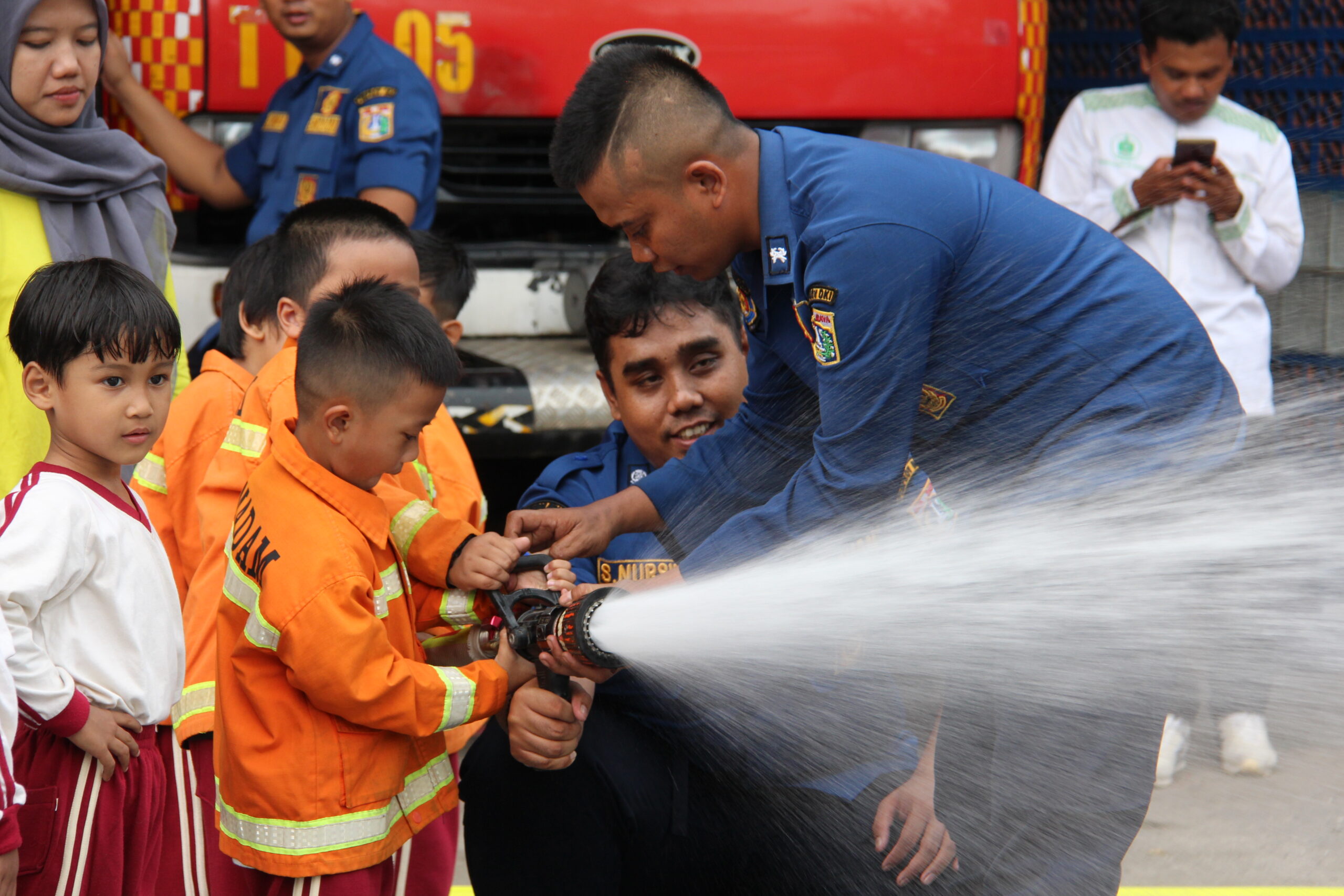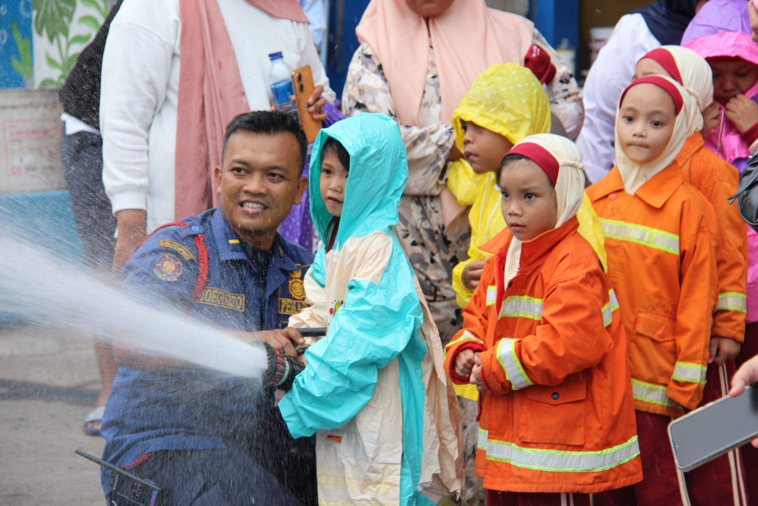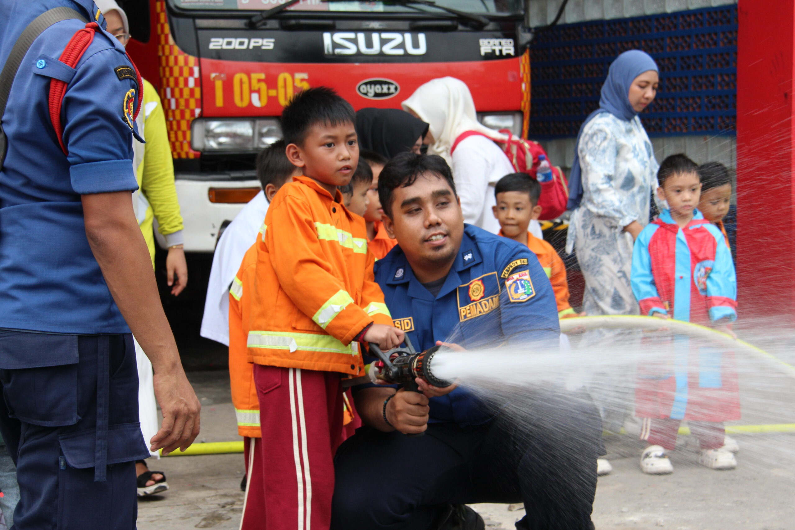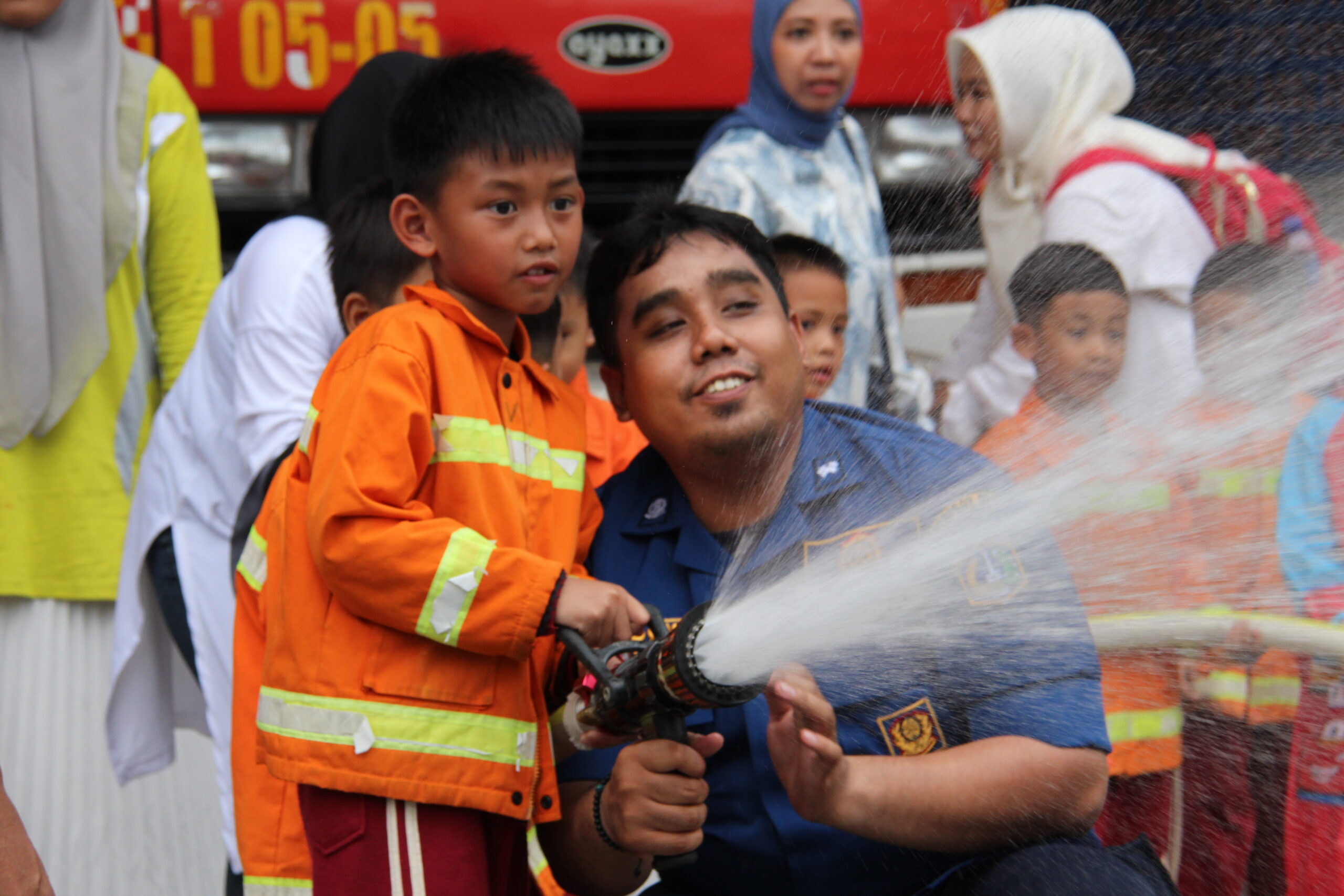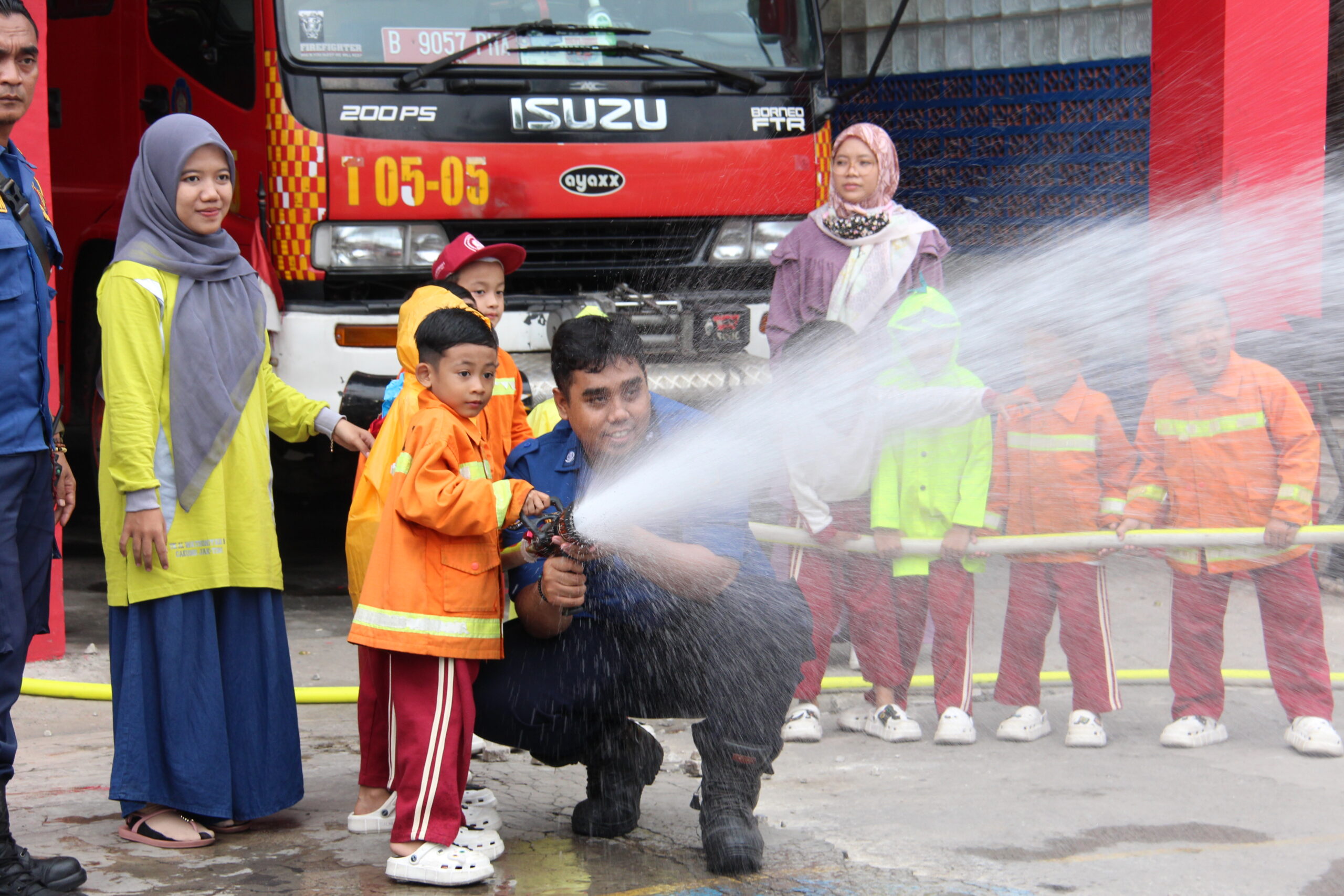 Momennya tiba ketika anak-anak diperkenankan untuk merasakan bagaimana cara memadamkan api secara aman. Dalam suasana simulasi yang terkontrol, mereka diajak untuk menggunakan selang air kecil dan menyemprotkan air ke “api”. Dalam kegembiraan, mereka belajar bahwa keselamatan adalah hal yang utama dan diperlukan kehati-hatian dalam situasi darurat.