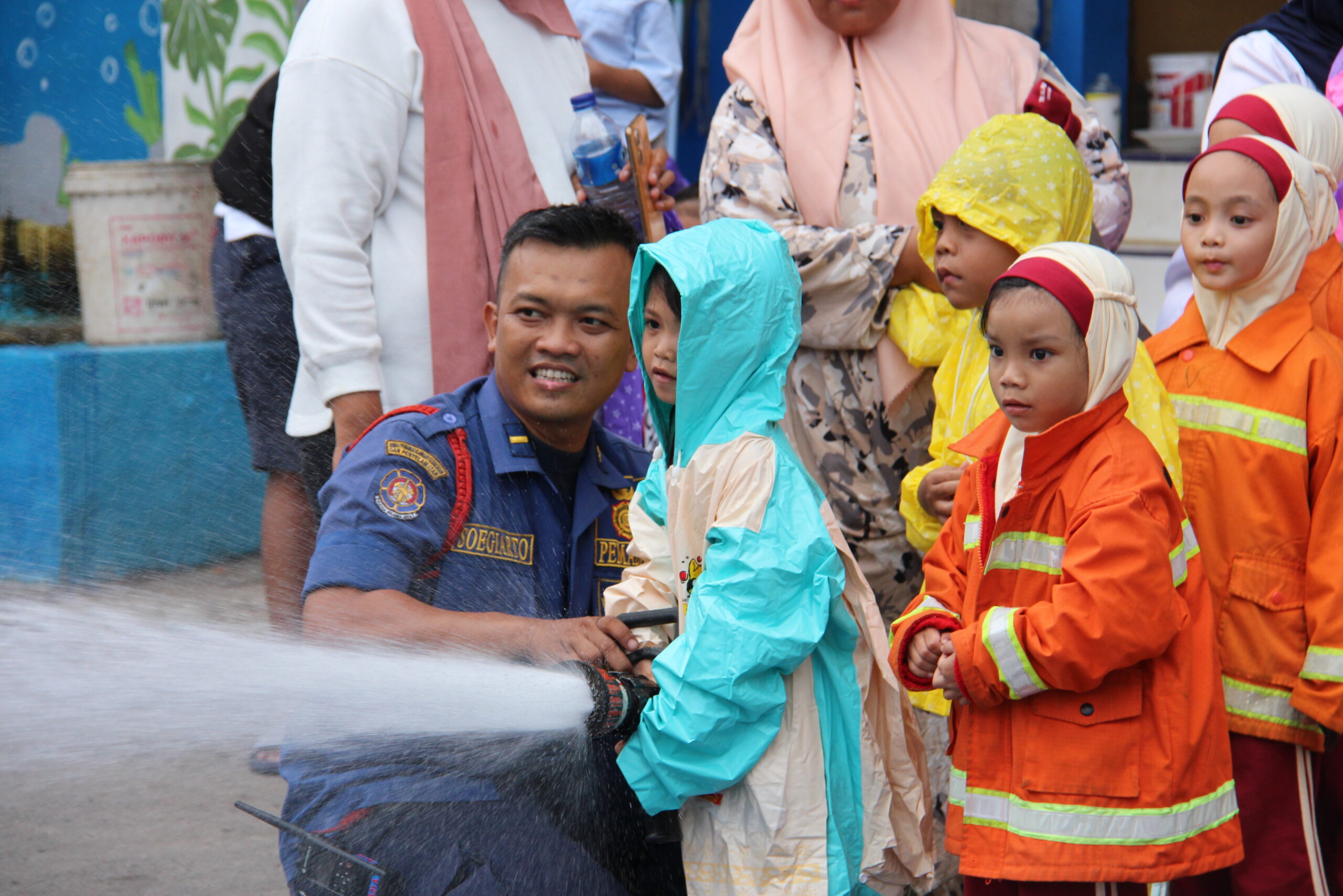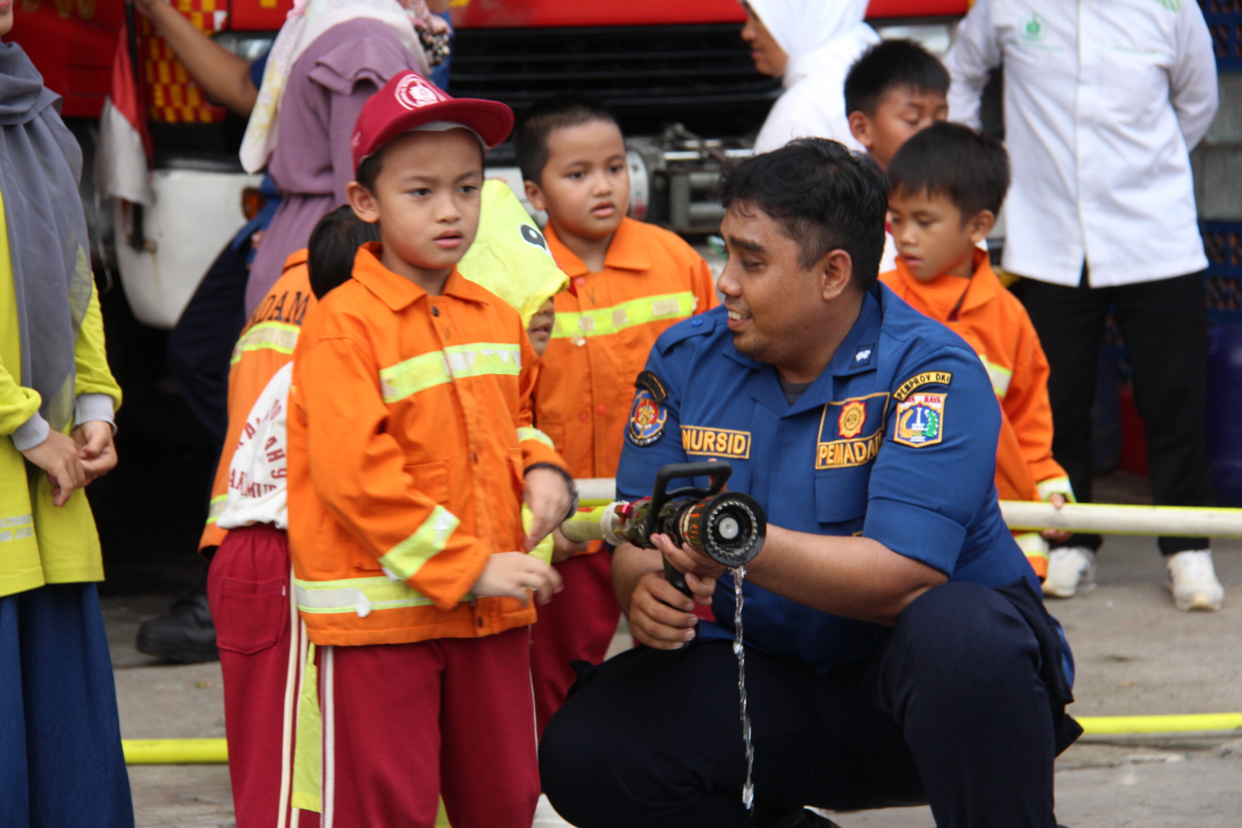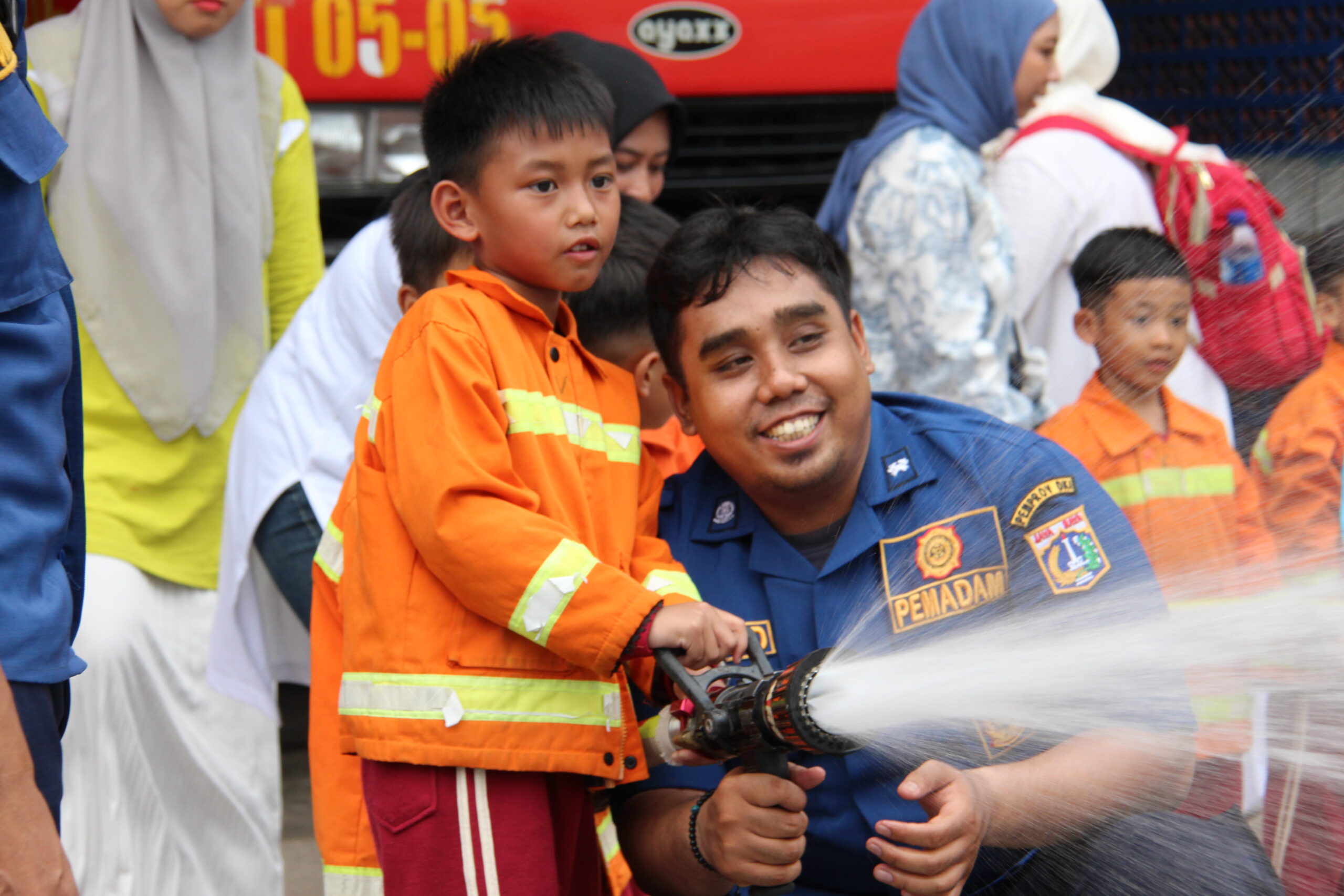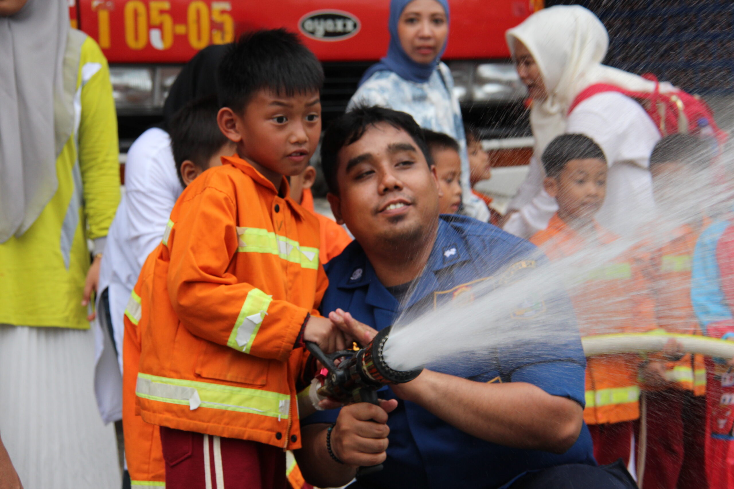 Momennya tiba ketika anak-anak diperkenankan untuk merasakan bagaimana cara memadamkan api secara aman. Dalam suasana simulasi yang terkontrol, mereka diajak untuk menggunakan selang air kecil dan menyemprotkan air ke “api”. Dalam kegembiraan, mereka belajar bahwa keselamatan adalah hal yang utama dan diperlukan kehati-hatian dalam situasi darurat.