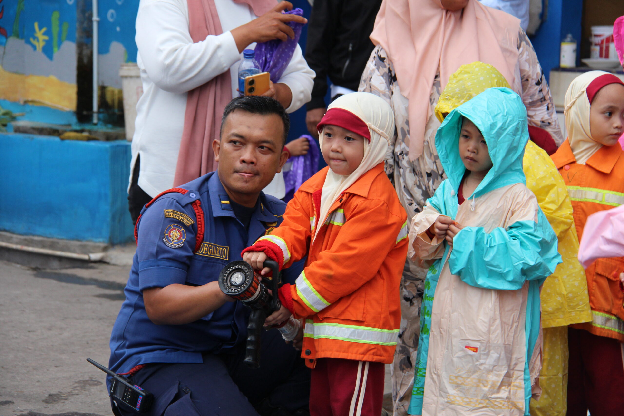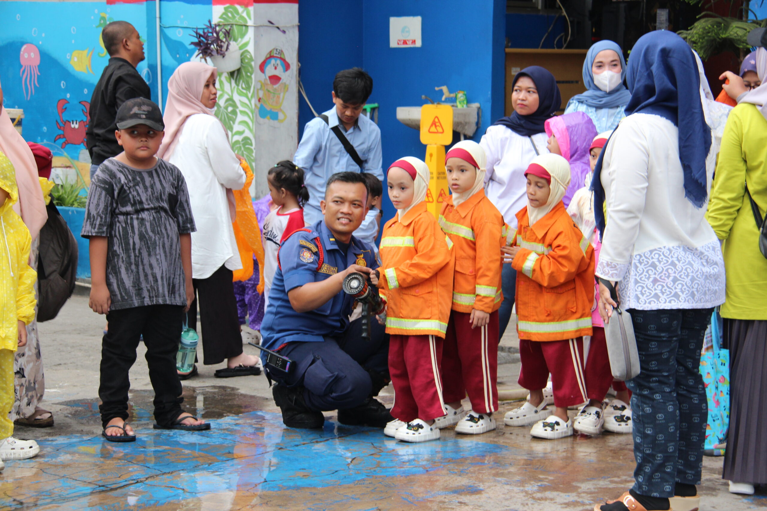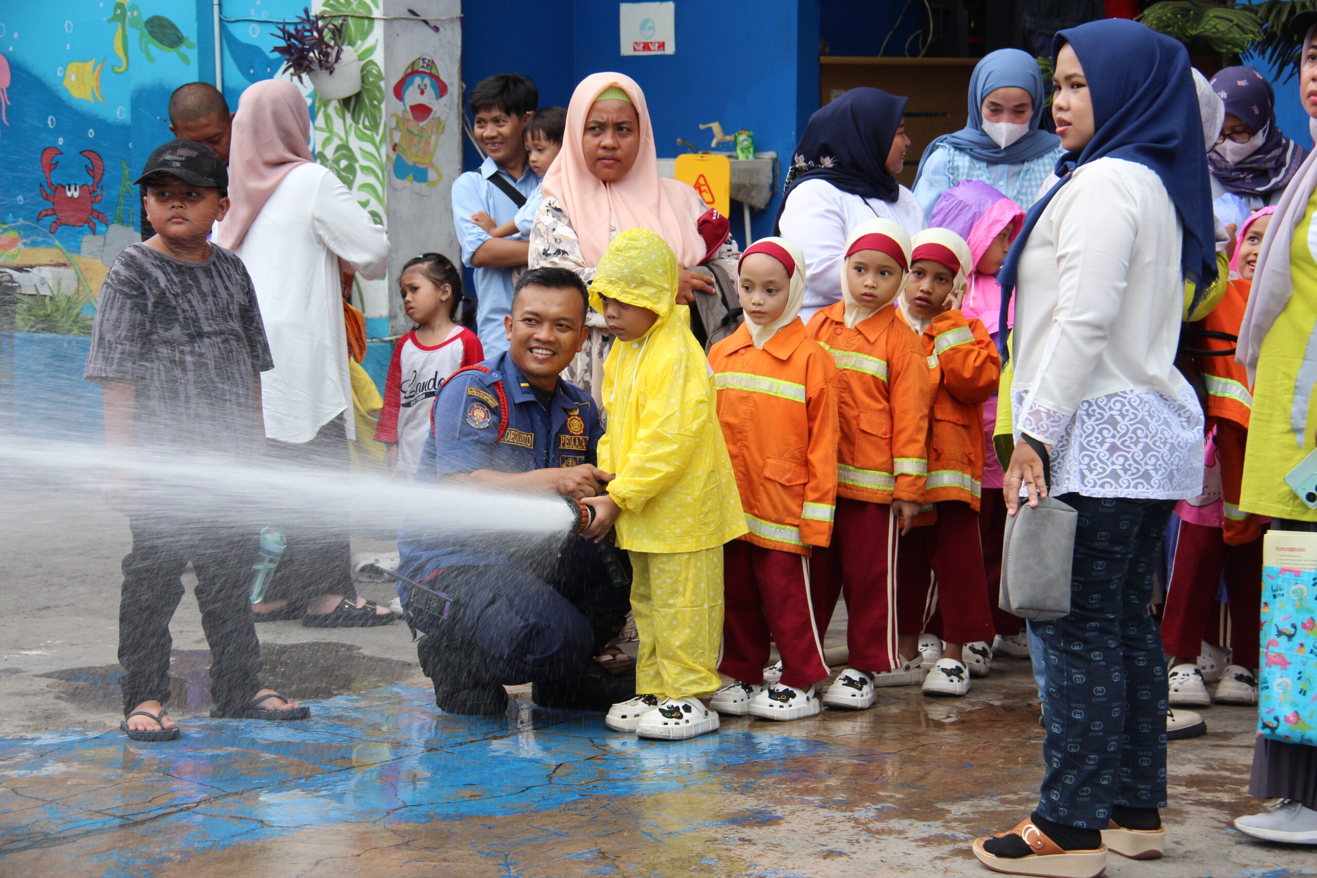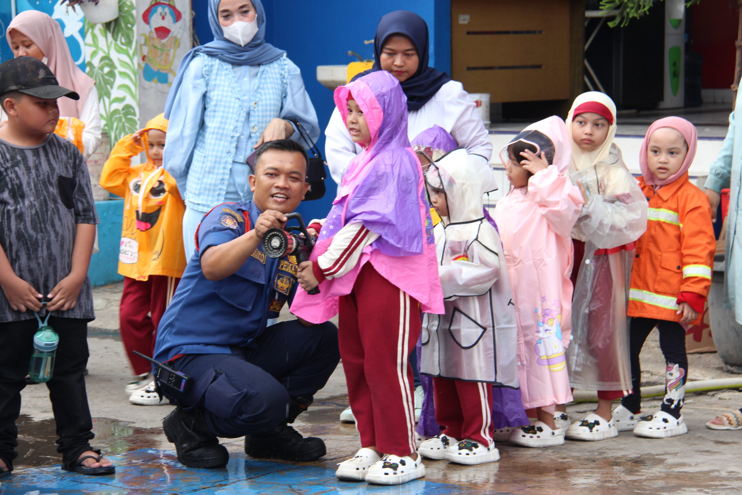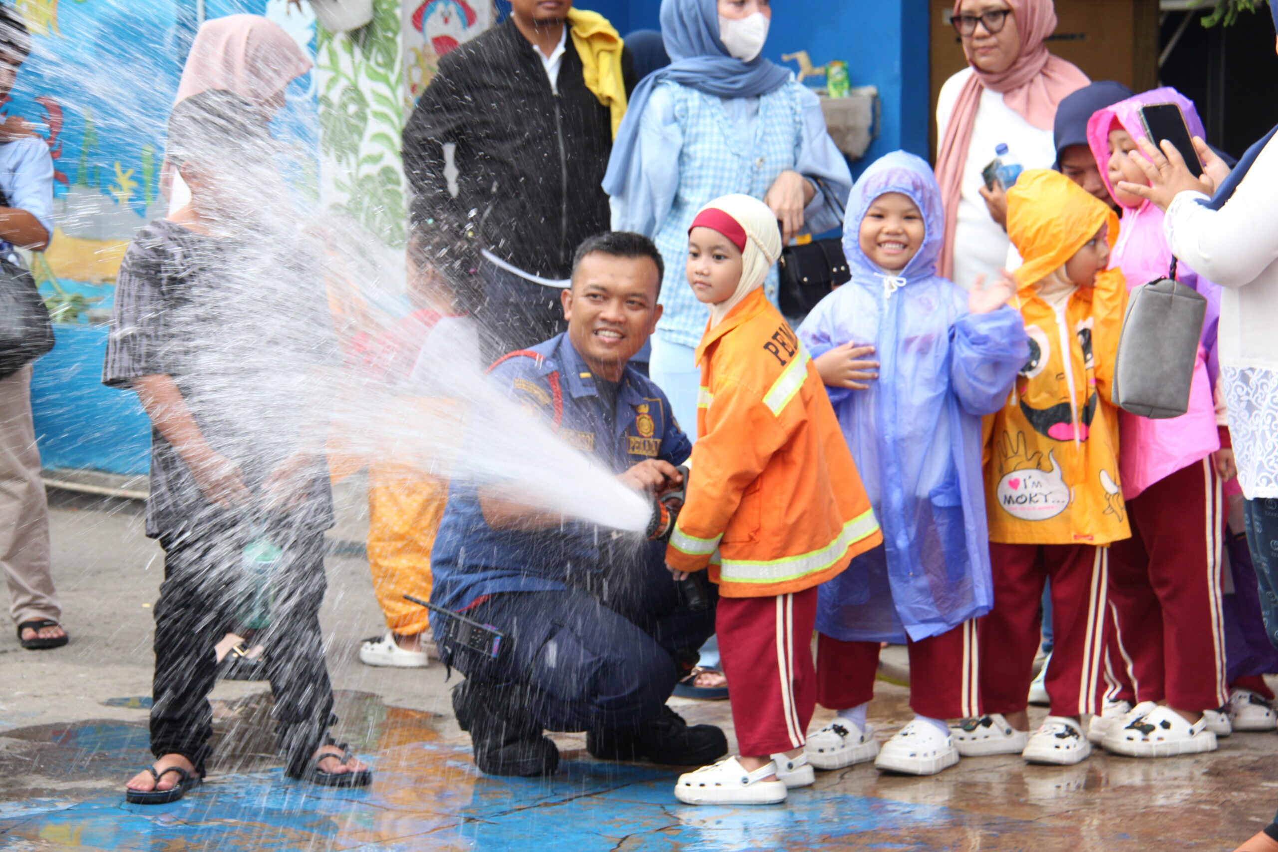 Momennya tiba ketika anak-anak diperkenankan untuk merasakan bagaimana cara memadamkan api secara aman. Dalam suasana simulasi yang terkontrol, mereka diajak untuk menggunakan selang air kecil dan menyemprotkan air ke “api”. Dalam kegembiraan, mereka belajar bahwa keselamatan adalah hal yang utama dan diperlukan kehati-hatian dalam situasi darurat.